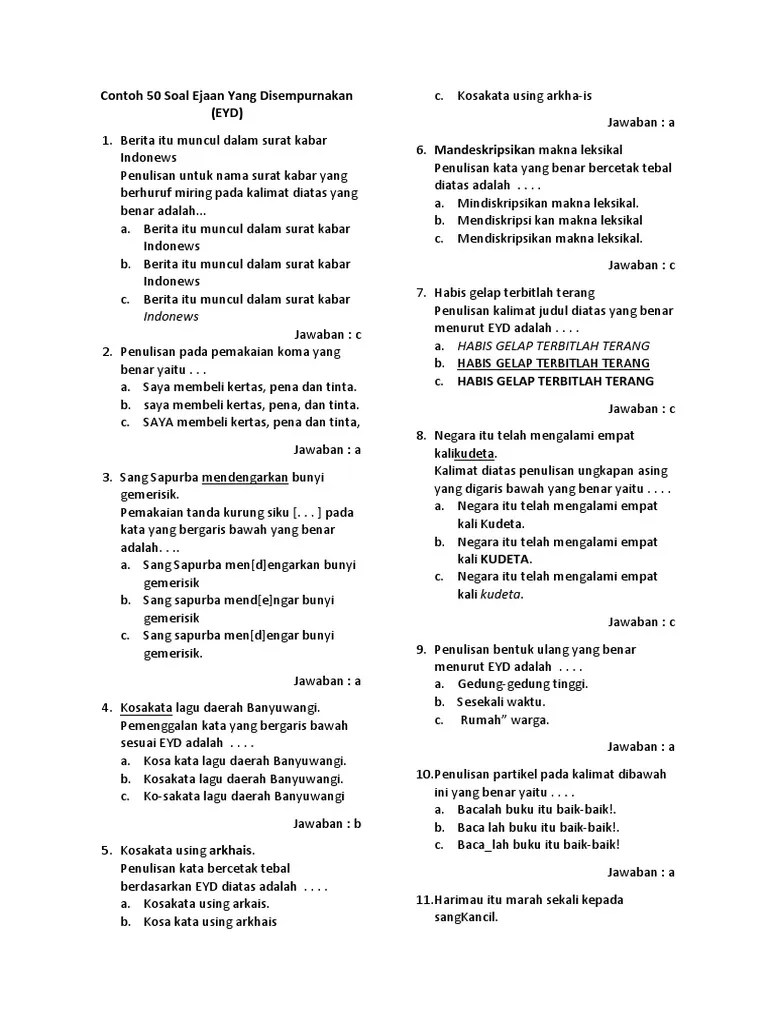 Contoh Soal Penggunaan Ejaan Yg Tepat Beserta Jawabannya - Contoh Soal Teks Eksplanasi Pilihan Ganda Dan Kunci Jawaban : Kumpulan soal memperbaiki penggunaan huruf kapital pada kalimat dan paragraf disertai.